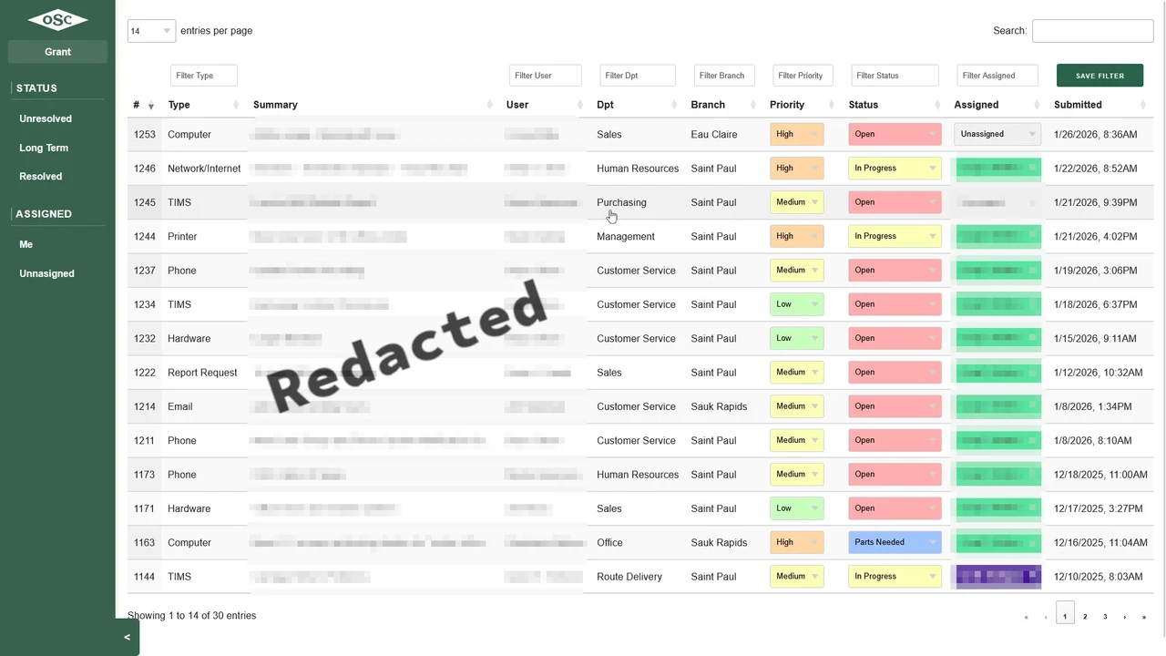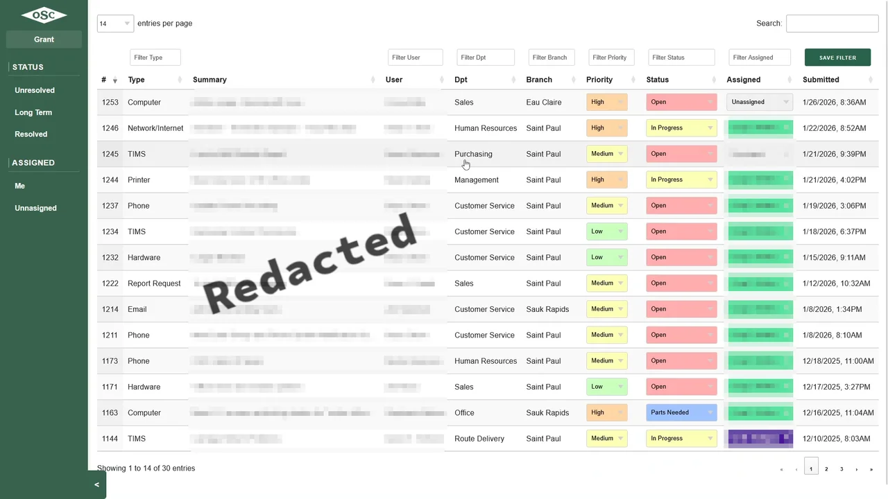 Developed multi-department ticketing system with Active Directory integration, tracking thousands of requests across the organization.